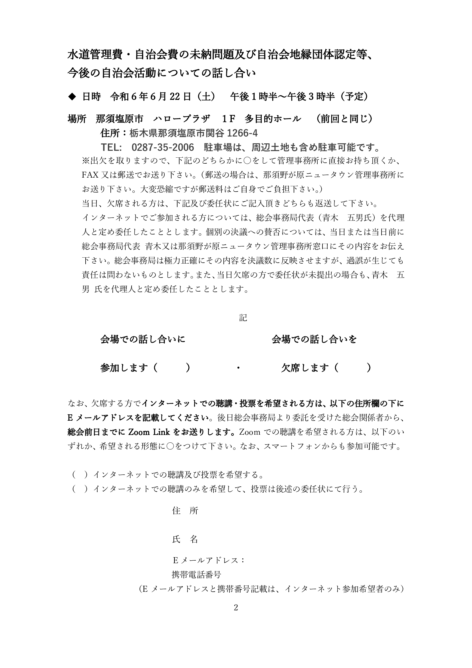 令和6年6月 22 日(土) 午後1時半~午後 3 時半(予定)